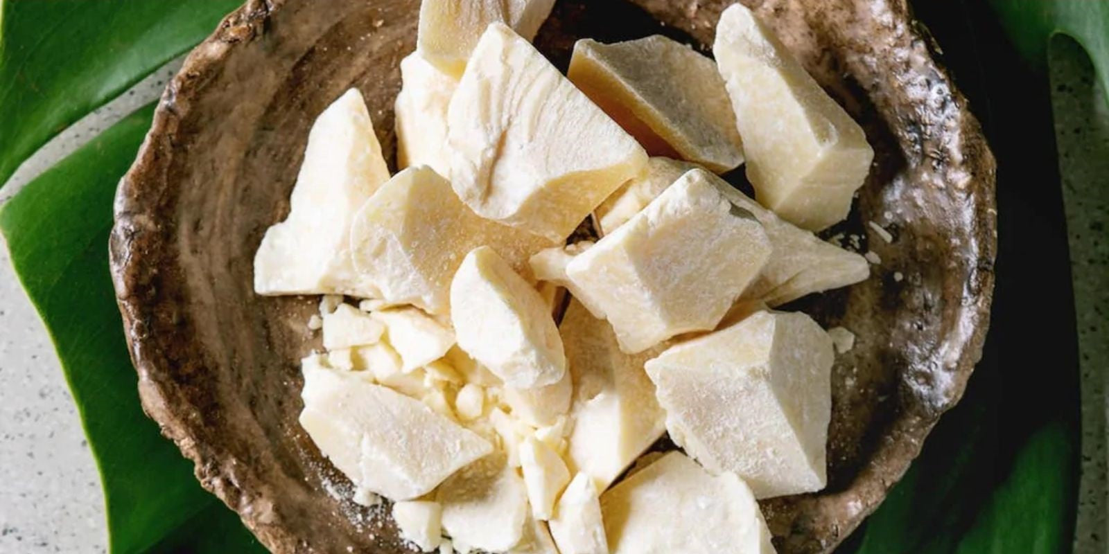 Cocoa butter is especially good for dry skin, it nourishes, softens soothes and protects. It contains stearic, palmitic and oleic acids. It is obtained from the roasted seeds of the cocoa tree, these are the same seeds that give us cocoa and chocolate and it literally smells like chocolate, try the Skin Saviour Balm.